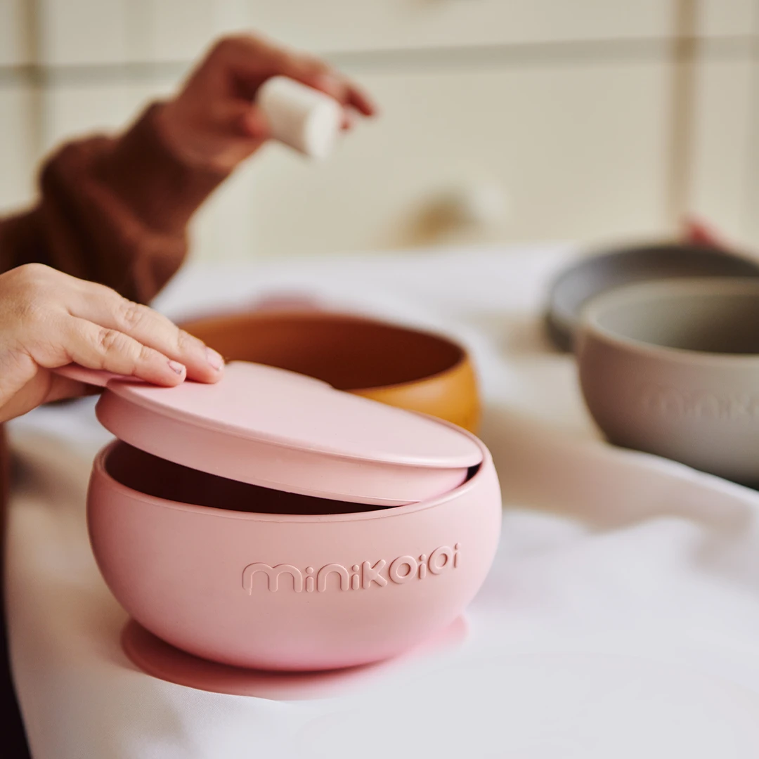 Un bol en silicone avec base anti-dérapante pour rester bien en place. Le couvercle inclus permet de garder le repas bien au chaud ou de conserver les aliments au réfrigérateur. Facile à nettoyer, ce bol passe au four (max. 200°C) et au four micro-ondes (sans le couvercle). Un peu plus d’infos sur la marque de ce produit: Minikoioi… Minikoioi a été créé afin de partager avec les parents du monde entier une vision de produits pratiques et innovants. Sucette-doudous, anneaux de dentition, bavoirs et vaisselle en silicone… Minikoioi offre une gamme de produits pour bébés sains avec design fonctionnel unique.