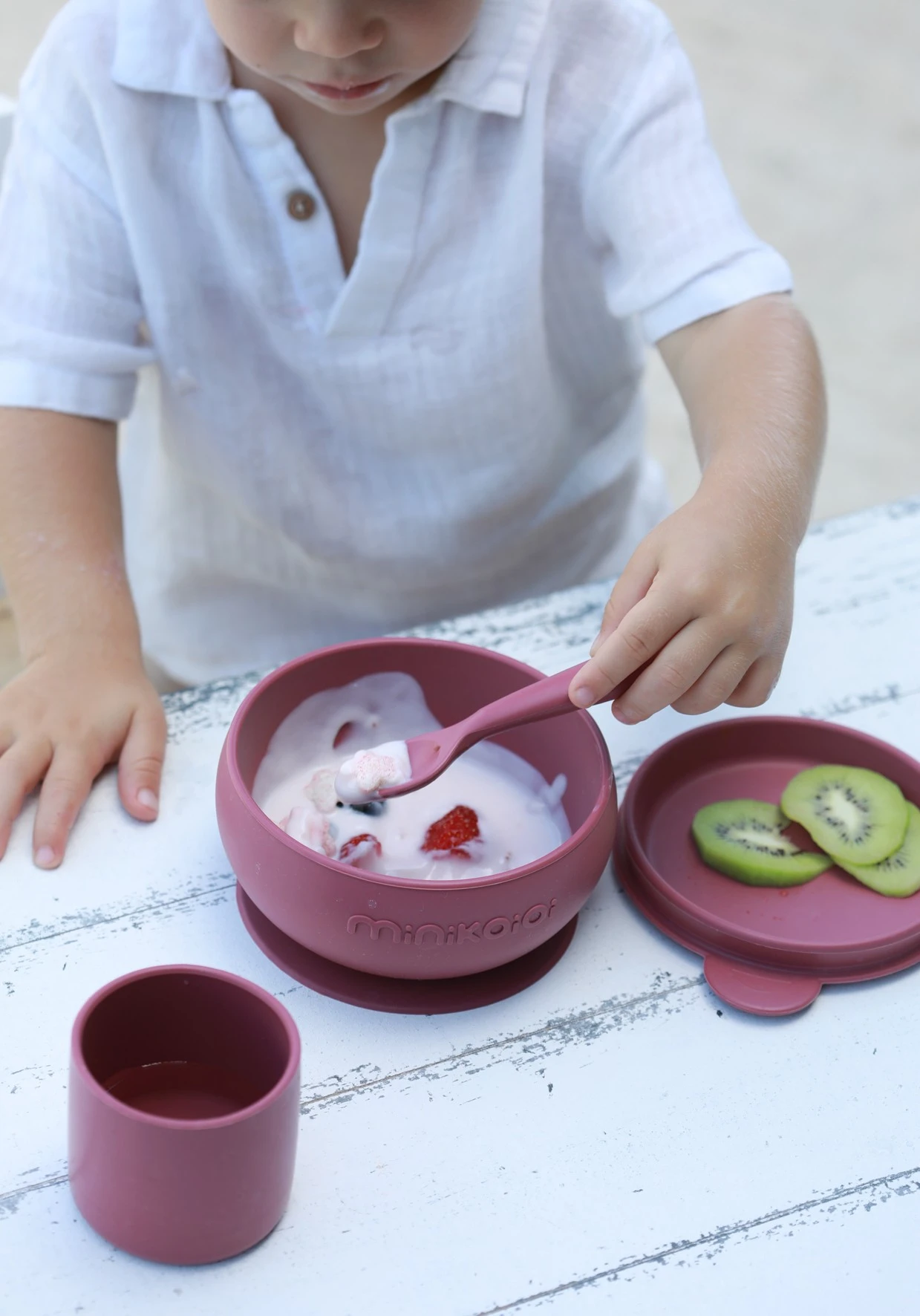 Un bol en silicone avec base anti-dérapante pour rester bien en place. Le couvercle inclus permet de garder le repas bien au chaud ou de conserver les aliments au réfrigérateur. Facile à nettoyer, ce bol passe au four (max. 200°C) et au four micro-ondes (sans le couvercle). Un peu plus d’infos sur la marque de ce produit: Minikoioi… Minikoioi a été créé afin de partager avec les parents du monde entier une vision de produits pratiques et innovants. Sucette-doudous, anneaux de dentition, bavoirs et vaisselle en silicone… Minikoioi offre une gamme de produits pour bébés sains avec design fonctionnel unique.
