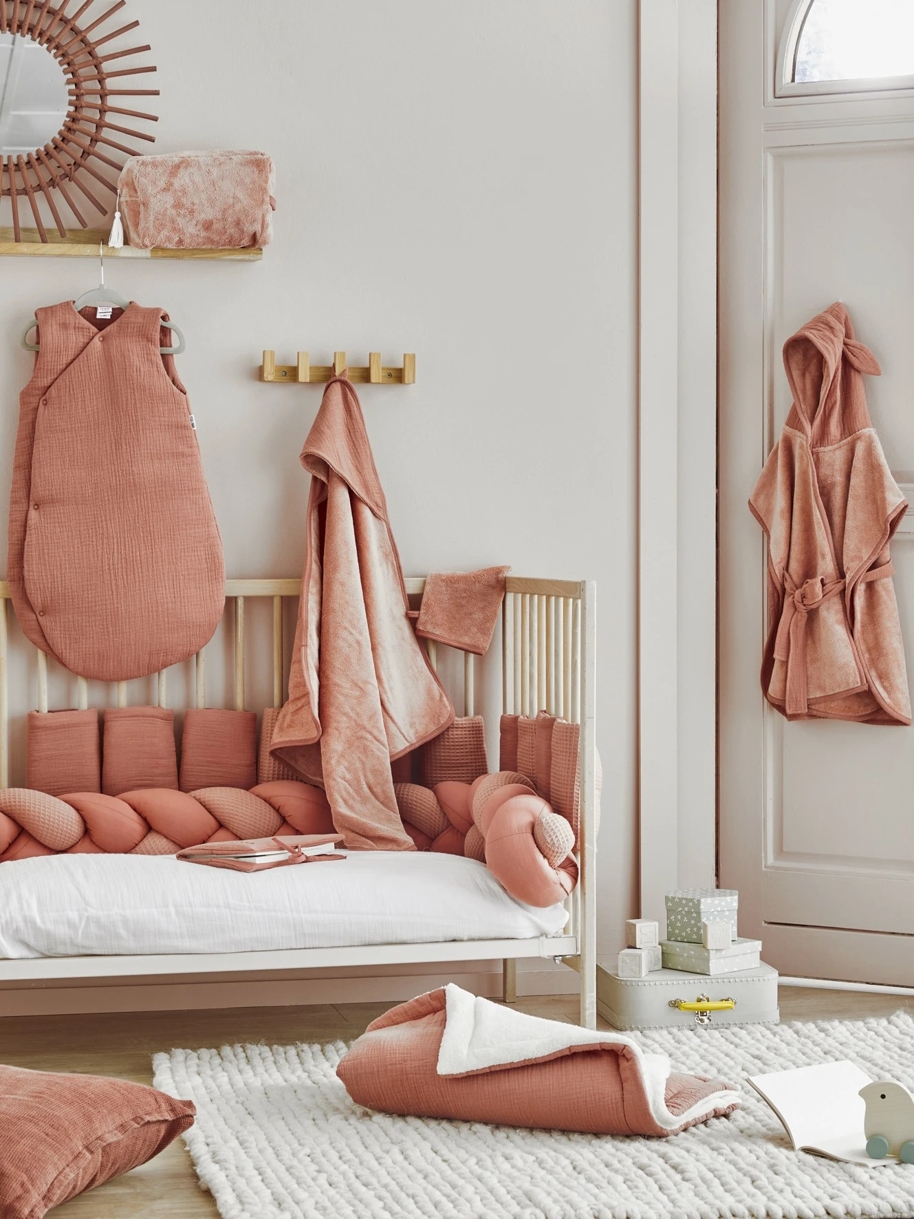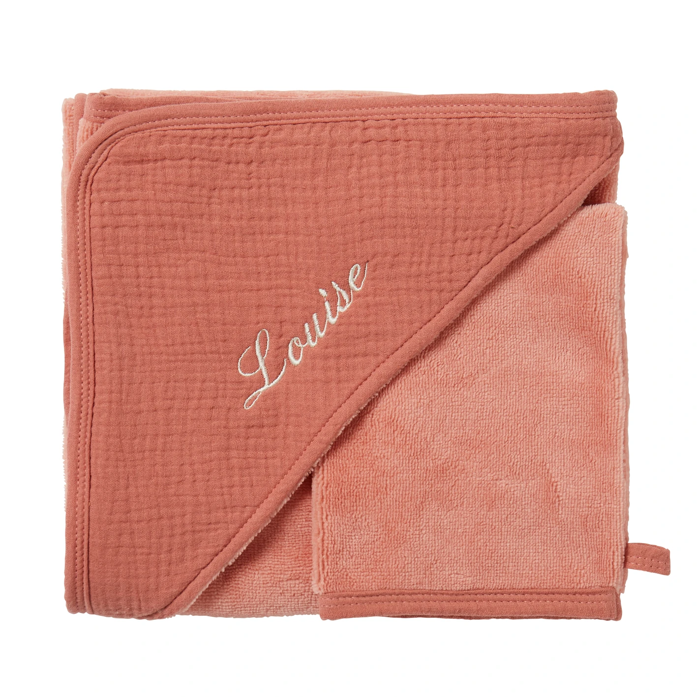 Une jolie cape de bain à capuche et son gant assorti