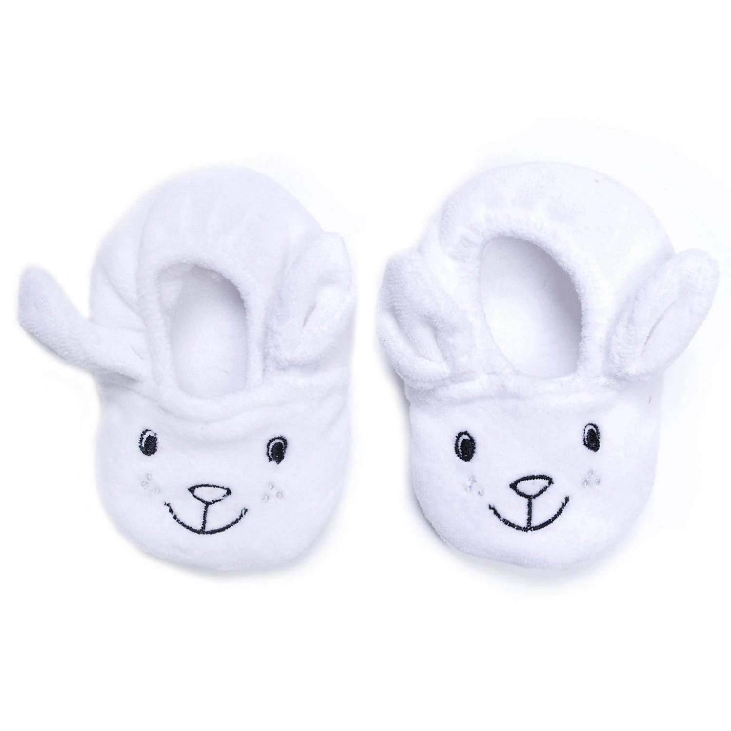 En velours tout doux, ces chaussons gardent les pieds de bébé bien au chaud tout en apportant la touche finale à sa tenue. Avec sa broderie lapin et ses petites oreilles, ce modèle donnera à bébé à un air à croquer ! Chaussons élastiqués à l’arrière pour un bon maintien au pied et doublés en 100% coton pour un confort inégalé. Taille unique 0-6 mois.