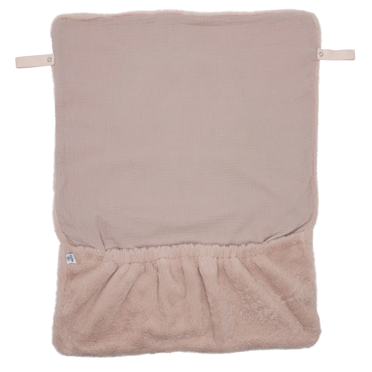 Merveilleusement douce, cette couverture très stylée va garder bébé bien au chaud durant toutes ses balades hivernales. Grâce à ses languettes sur les côtés, elle se fixe aisément sur la poussette ou sur le porte-bébé pour éviter que bébé ne se découvre. Très stylée, elle est composée d’une face en fausse fourrure angora, et d’une face en gaze de coton. Une poche kangourou sur le devant permet de garder les mains de bébé (ou de maman !) bien au chaud. Rabat élastiqué au verso pour garder les pieds au chaud.