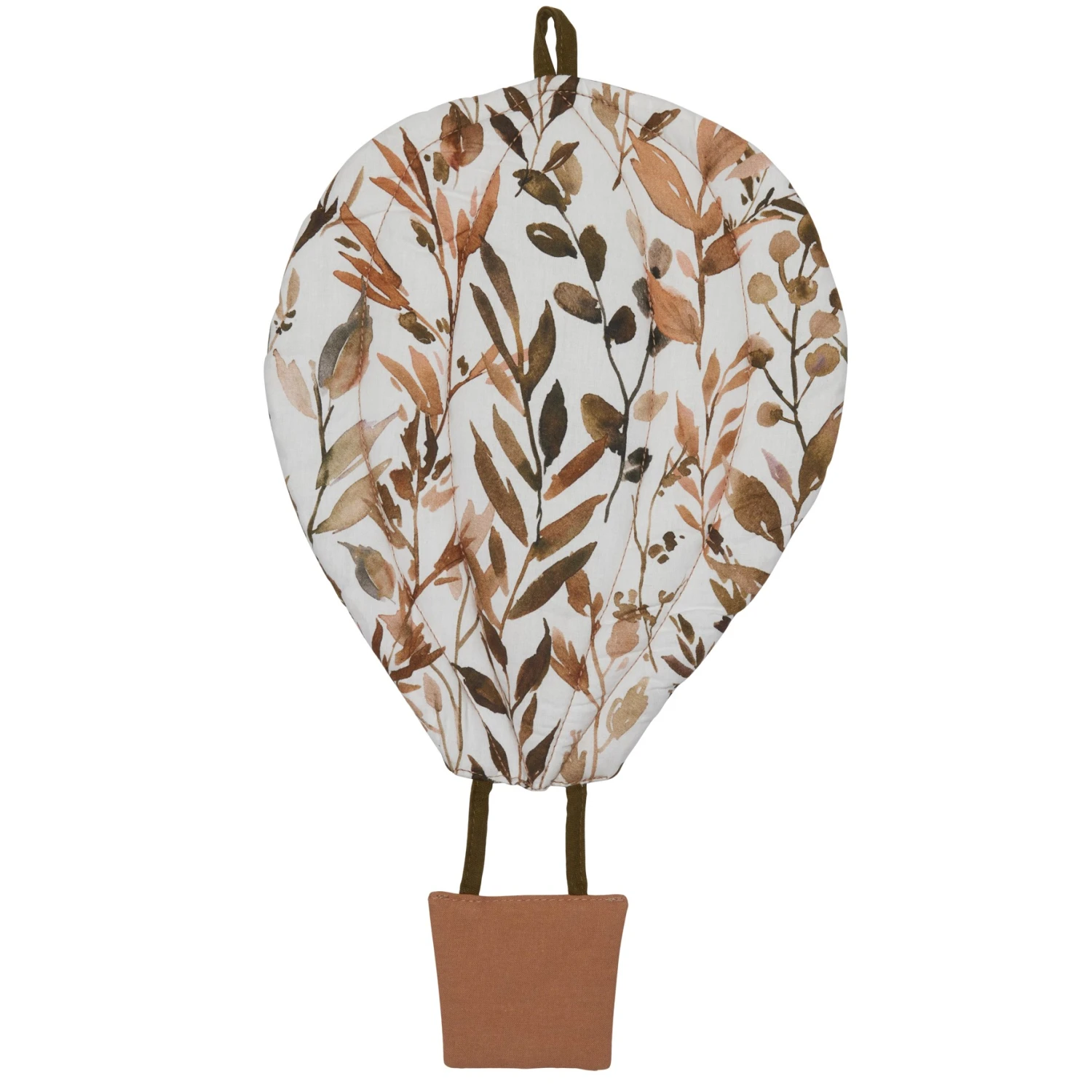Une magnifique montgolfière en coton pour apporter la touche finale à la décoration de sa chambre ! A suspendre au mur à l’aide de sa languette en tissu. Dimensions : 40 x 22 cm env.