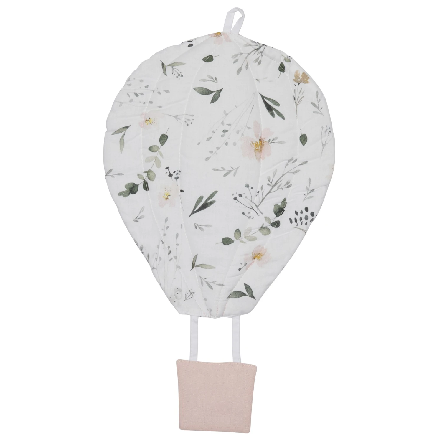 Une magnifique montgolfière en coton pour apporter la touche finale à la décoration de sa chambre ! A suspendre au mur à l’aide de sa languette en tissu. Dimensions : 40 x 22 cm env.