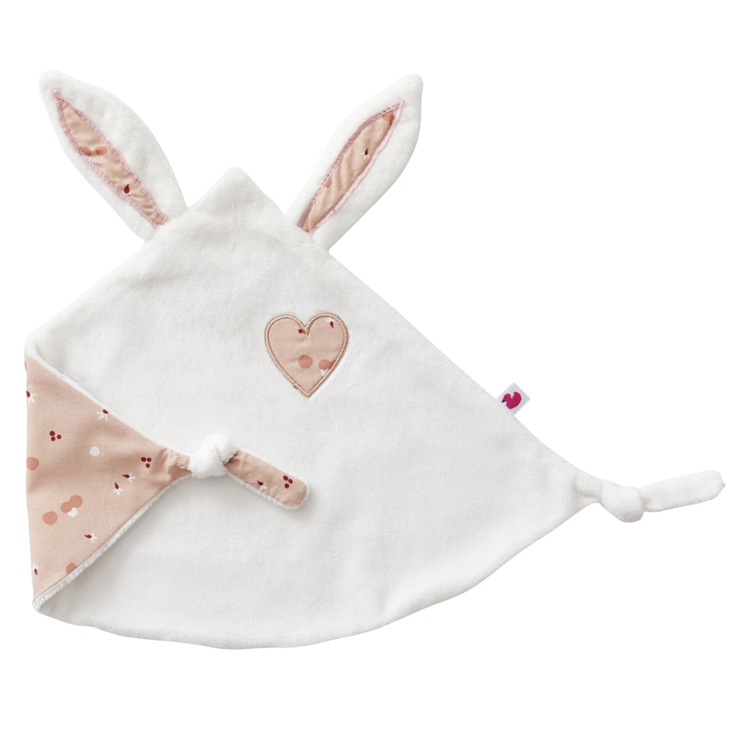 Un joli doudou plat tout doux avec des oreilles de lapin pour faciliter la prise en main par bébé.