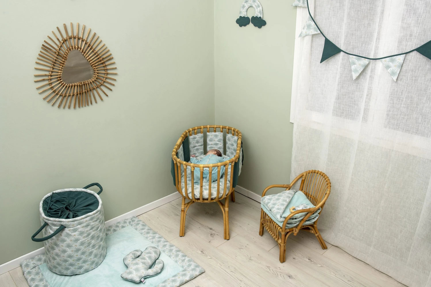 Une jolie guirlande composée de fanions en coton pour apporter une touche déco très tendance à la chambre des petits ! Cette guirlande a une longueur de 250 cm environ.