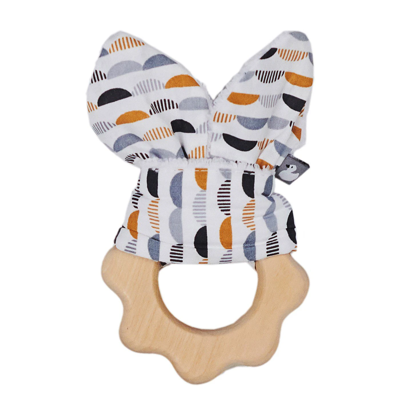 Un hochet naturel pour soulager les gencives de bébé. Son anneau doux en bois s’attrape très facilement et permet à bébé de développer sa dextérité. Ses petites oreilles de lapin en tissu coloré stimulent la vue et le toucher des tout-petits. Chaque hochet est composé d’un anneau en bois naturel (bouleau) fabriqué en Europe et d’une bande de tissu nouée en pur coton (recto en popeline imprimée et verso en éponge absorbante).