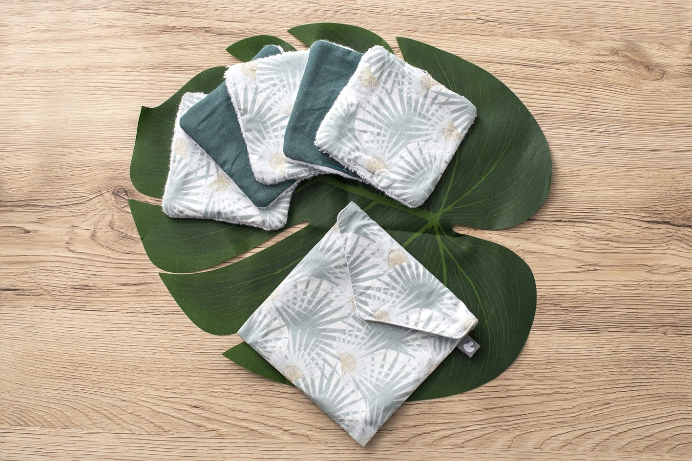 Lingettes Lavables & Pochette Assortie Imprimé Palmiers / Vert