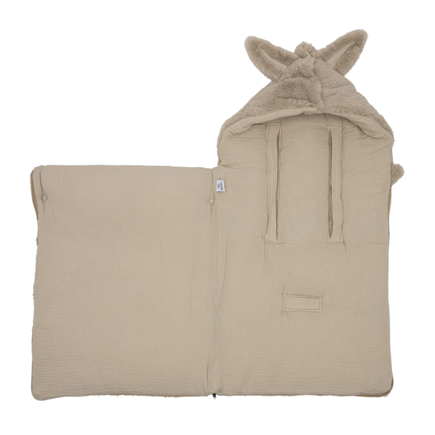 Un nid d’ange en fausse fourrure très douce pour garder bébé bien au chaud ! Entièrement ouatiné et doublé de gaze de coton, cet adorable nid d’ange est entièrement zippé et comporte des fentes universelles à scratch pour le passage des sangles (siège auto ou poussette). Avec ses oreilles de lapin, ce nid d’ange va rendre bébé encore plus craquant !
