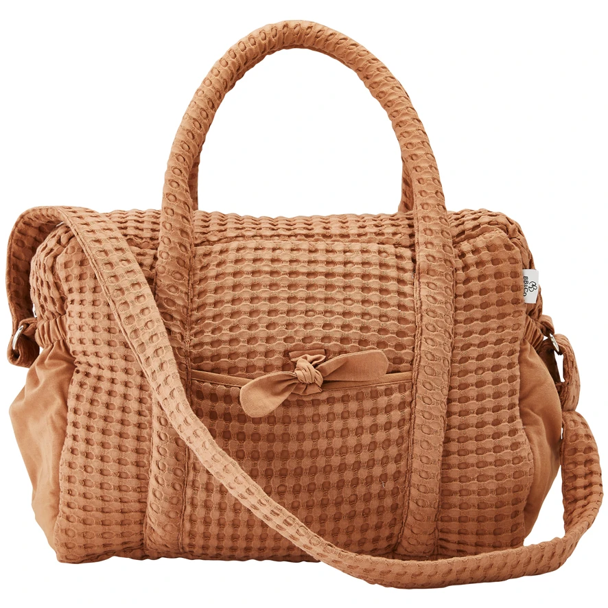 Un sac à langer chic et tendance pour les balades avec bébé ! Grâce à sa grande capacité et à ses multiples poches à l’intérieur comme à l’extérieur, ce sac à langer permet d’emporter toutes les affaires dont vous avez besoin le temps d’une balade ou d’un week-end. Il peut se porter à la main grâce aux anses, sur l’épaule avec la bandoulière ajustable ou encore sur la poussette. L’intérieur est entièrement doublé de coton enduit pour un entretien facile. Picots de protection sous le sac.. Contenance : 17,5 L.