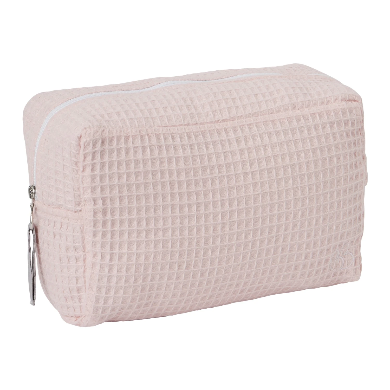 Enfin une trousse de toilette imperméable à la fois jolie et pratique ! Extérieur en nid d’abeille pur coton, doublure en coton enduit et rembourrage en ouate polyester. Broderie sur le devant.